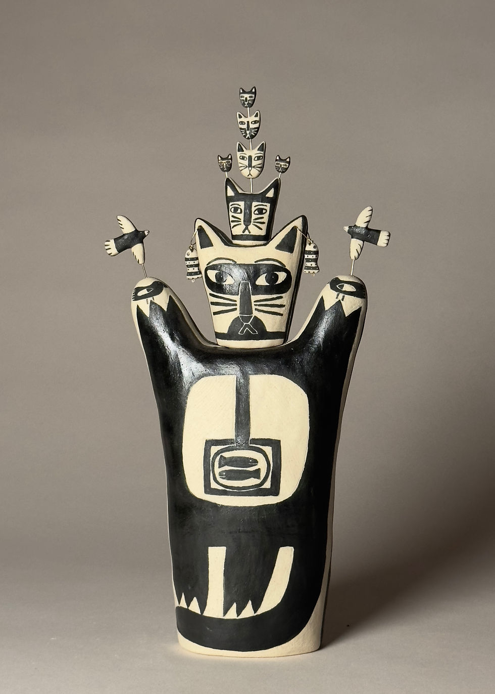 "Creating forms with a chunk of moist earth is a tangible way to touch the world, to make an offering. Each piece is double-sided, which lends a playful element that invites the viewer to interact with the work and experience the delight of discovering the other side."